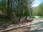 Kb. 6 km után balra figyeljük a táblát, mert leereszkedünk a Jánosházi Vadászházhoz és emlékkereszthez.
