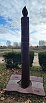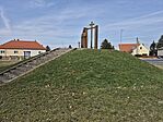 6. 1956-os emlékmű 2006-ban, az ötvenedik évfordulón állították. Alapja márványlapokból kirakott magyar zászló, mely felső és alsó sávjában az 1956 és 2006 évszámokat viseli. A zászló közepén levő lyukból kinövő oszlop égő gyertyát formáz, rajta ugyancsak a két évszám, valamint a babérágakkal övezett Kossuth-címer és egy lyukas zászló, melyen két kopjafa nyúl át.