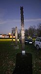 Bakonyi túra után délután pápai városnézés lett a program, hazafelé megálltunk itt az Emlékparknál egy rövid nézelődésre. Jó kis hely, tetszettek a kopjafák és a szobor is, szépek a faragások. A doboz a helyén, jó a rejtés mimikrije. ;)