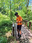 Ma a GCMTB6 ládát tekertük le Kiváncsifáncsival. Úgy terveztük az útvonalat, hogy ez a láda is útba essen. Hát biciklivel nem volt a legkönnyebb ide jutni. A Római-fürdő felett, a piros sávon érkeztünk. Itt letekertünk a Római fürdő fölé, és kis földutakon próbáltunk eljutni a forrásig. Ez biciklivel kimondottan nehéz volt. Rengeteg kidőlt fán kellett átcibálni a gépezetet. Meg aztán a patakon is, míg végül sikerült eljutnunk a forráshoz.