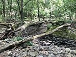 Utána végig le a pályán, egészen a még működő fővonalig. Az 1. pontig (és kicsit tovább) tökéletes állapotban vannak a töltések és a bevágások is, csak néhány kidőlt fát kéne elvinni, és le lehetne fektetni a síneket. Aztán később rosszabb a helyzet: bebokrosodott, beerdősült a pálya helye, a hidak is rosszabb állapotban vannak. A végén már szinte bozót, egy kis ösvényen kanyarogva lehet bujkálni.