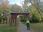 A vasútállomástól csak egy parkolón, egy gyalogátkelőn kell átsétálnunk, máris zöldben, hatalmas fák közt találjuk magunkat. Akár a séta előtt is, de annak végeztével bizony jól eshet megpihenni egyik padján, az árnyékban.
