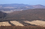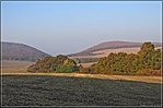 A Zerge-féle parkolóból (hajtűkanyar) indultam végig a kék jelzésen. Nagyon kényelmes megközelítés, észre se lehet venni a 200 m szintet és a 2500 m távolságot. Az első 250-300 métert azonban egy szántóföld szélén kell megtenni, pontosabban magán a szántóföldön, mert a gazda bizony felszántotta azt egészen a földet szegélyező bokrok tövéig. Most csak igen mély a talaj, de később ez feltehetőleg egy napraforgó- vagy kukoricatábla lesz, amelybe majd bele kell gázolni.