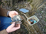 Ládakarbantartás újra. Mega-nagy köszönet Attilának (Rábaata), aki visszarejtette az új ládát az új helyére, mely kb. 15-m-re van a mérőállomástól egy vastagabb fa gyökerében megbújó zárt gyűrűben. A kényesebb termékek és a füzetecske légmentesen lezárható zacsiban van, és lezárt ládát is egy nagy műanyag zsák védi, azaz úgy került be a henger belsejébe. Reményeim szerint ez most egy hosszabbtávú és biztonságos megoldás lesz még ezen a vizes terepen is.