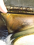 Most elég magas a vízállás, alig fér a medrébe. A láda régi emlékeket ébresztett bennünk :) A rejtek jó, a doboz belseje vizes, de a belső zacsi azért még jól zár...