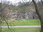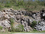 A helyszínig eljutni nem okoz nagy problémát. Na de ott? Egy ügyetlenke, nehézsúlyú kesser (mint én) hogy jut fel oda? Sehogy. A párom mászott fel egyedül, én meg lent aggódtam (Olvadó havas, agyagos lösszel fedett kövek). Nincs valami odavezető, tisztességesen járható ösvény? Na mindegy, maga a kőfejtő is az enyészeté, a szétdobált olajoshordók, beszakadt deszkaszinpad, nem odavaló kőzetek (sitt). Pedig az ilyen kincset ápolni, őrizni, mutogatni kellene. A rejtek helye lentről jól látható, a kereső oda észrevétlenül nem juthat el (terepszínű álcaruha?) Szemben egy földrengésjelző állomás - minek? Tudtommal a gránit az egyik legstabilabb kőzet, nem szeret mozogni. Így biztos mindig nullát mér az állomás. [gps nélkül]