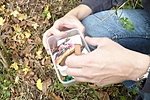 Ez a láda volt a mai napon a 3., a Tolna-25 teljesítménytúra teljesítése után. A terep tényleg húzós, főleg, hogy eső után voltunk ott. A ládát felülről közelítettük meg(a leírás alapján) és sokáig túl magasan kerestük. Láttuk, hogy előttünk is sokan keresték ott a ládát, mert a csapások árulkodóak voltak. Végül is meglett a láda, de alacsonyabb részén a gránittömbnek, mint gondoltuk. A rejtés és a gránittömb is klassz!