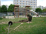 A terület, melyre kikerült, 2 év alatt sok változáson ment keresztül. A füves részre egyre több facsemete került ki. 3 diófa, 1 ringló, 3 akác, és most egy mezei juhar. Sajnos, a többi fánál még nem vettük észre ezt a lehetőséget (GCgeof + Poi), de most erre is felkészültünk. Szorgalmasan fotóztunk, a meló mellett. Nem is olyan egyszerű három, 7 év alatti gyerekkel együtt dolgozni.