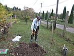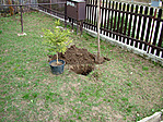 Többnapos munka volt :-), egyiknap kicsákányoltuk a fagyott földet, másnap elmentünk trágyáért, harmadnap kiültettük a fát.