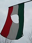 Az udvaron álló zászlórúdról leszakadt a zászló és a földön hevert.