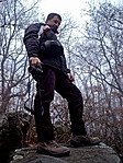 A tervezett társaság megijedt a pár csepp esőtől ezért egyedül vágtam neki - némi logisztikai átszervezés után (vonat, busz), félkézzel. Sástó felől mentem, a vége nagyon meredek volt - szerencsére lefelé (a Kozmáry kilátó felé más utat kersetem: zöld). A felhagyott tábor felől másztam a sziklákhoz. Fél órával előttem járt ott valaki. Köszönet a rejtőnek!