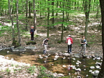 Nagyon tetszett a patakvölgy!! Furcsa volt az erdő közepén a vasúti fa-talpfákon sétálni. :-) Lajosházánál pihenő, szendvics, csoki.