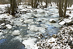 Csodálatos az erdő ilyenkor télen. A lombtalan fák között átsüt a Nap, a fagyott patak, a fák között a keményre fagyott hó csillog a napsütésben, csak hát hideg van. Az utakon kiválóan lehet kerékpározni, de vigyázni kell a hó alatti jégbordákra. Az egyik huppanóba visszafelé lendületből mentem bele, amikor észrevettem, hogy tiszta jég az egész, már késő volt a lassításhoz. Fék és kormány mozdulat nélkül átsuhantam a veszélyes helyen, megúsztam baj nélkül...