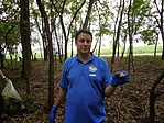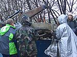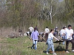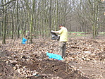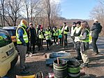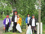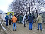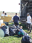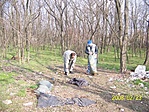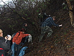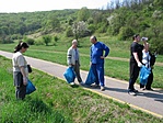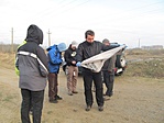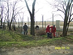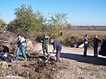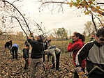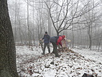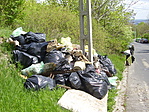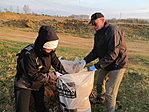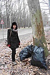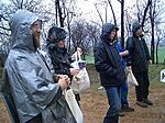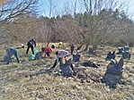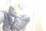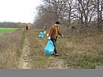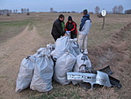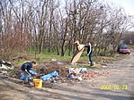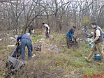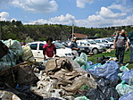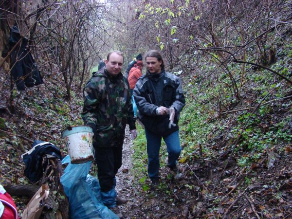 08.00 körül: Az időjárással nem törődve, (megfelelő mennyiségű forraltbor betankolása után) zsákokat és kesztyűket ragadva több mint huszan letámadjuk az erdőben és az út mellett lévő szemétdombokat.