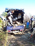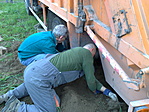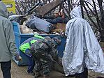 11:00 körül konténer megérkezése, megtöltött zsákok betömése