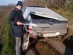06.45: Megérkeztünk Atival a tetthelyre, esik a hó, kb. 3-5 cm fehér lepel takarja a tájat. Maximális elkeseredéssel, de elkezdjük a sátor felállítását.