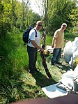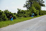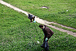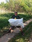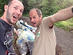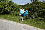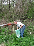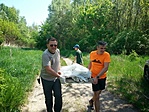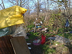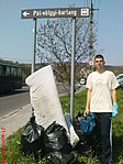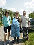 Dogmaiékkal gurultunk lefele. A célhoz közeledve már látszott a porcukor. Macok és Ati a sátorban, vételezünk forraltbort bátran. Kicsit gyűlünk, aztán indul az akció. Zsákok, kesztyűk, majd hajrá! A büdös, nyálkás szennyvíz hamar beszivárog a munkás kesztyűbe, rendkívül kellemetlen, a derék meg idővel szenved, ha sok a hajlongás. A lelkesedés azért sokáig töretlen, azonban amikor az útról buldózerrel letolt szemetet próbáljuk a fák, bokrok tövéből és a föld alól eltűntetni hosszasan hát, csak megfárad az ember. Ehhez egy markoló gép kell, nem kecses kéz.