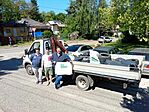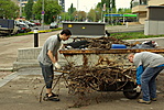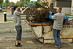 12.30-ig: sorban érkeznek az üres és távoznak a púposra megrakott konténerek (kettőt terveztünk, három lett belőle). A nap mérlege megközelítőleg 25 köbméter begyűjtött szemét.