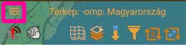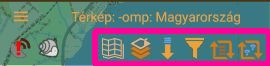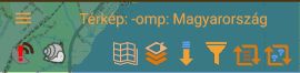 a címsáv alsó felében jobb oldalt a térképspecifikus funkciók ikonjai: Térkép/smink váltó / Rétegek / Ládaletöltés / Szűrő / Ládafrissítés / Mozgók frissítése |