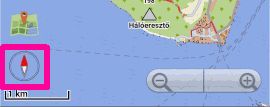 Maga az iránytű ikon mindig mutatja, hogy a térképen merre van az északi irány.