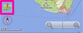 Kicsinyítés / Nagyítás gombok: egy gombnyomás kb. 0.707-szeres kicsinyítést, ill. 1.414-szeres nagyítást eredményez A gombok alapból nem láthatóak. Csak akkor látszanak, ha előzőleg megérintettük a térképet. Az utolsó érintést követő 20 másodperc múlva újra eltűnnek, hogy ne takarjanak el esetleg fontos részleteket a térképből. |